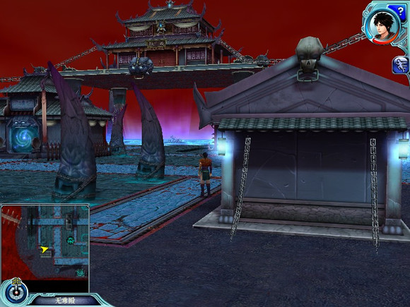 上地图先然后看全景这是初到鬼界的剧情段中给的预览图可以说那个悬在空中的大殿才是最亮的吧...这个场景就叫"无常殿"但是"无常殿"居然到不了....这正常么?正常么?这个角度比较近景一点可以看出大殿还是挺气派的