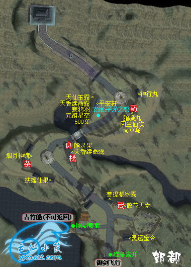 一.主线残缺①太平村初到时西边无法到达部分这处是很知名的,当初班长跳的使用示例就有。具体是,初到太平村,正常情况下只能从右侧下坡经过粽子摊引发剧情后被赶出无法回去,这样一来粽子摊以西的村子都过不去了。中央的戏台祠堂区域也是有路人堵住门口无法进入。(地图出处看LOGO)而通过班长跳,可以从山坡或是穿过祠堂戏台到达西边。这时可以触发杂货店夫君远行的委托,捡到琼华杂货店的委托所需物品钉耙秘籍。这时能触发的NPC对话也与后日再来时不同。此时杂货店和武器铺出售的装备都是1~9级的低级装备,这是武器铺的出售界面,其余就不一一贴了。后期再来也是这些。此时两店均无图谱出售可武器铺有"锻造"的选项。这时靠近太平村出口,有提示如下。再无法返回村内区域。注意这个对话里有黄色的字。此时要走只能出去巢湖边树林。从树林想返回是与正常时一样的理由,只是这样我们就把纱纱搞丢了Orz不过此处也有疑点就是啦,太平西边的可以拾取的物品比南边明显搞了一个档次Orz这个又是神马情况=皿=