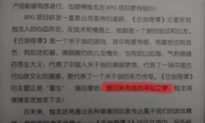 外迷之特典取自古剑奇谭游戏说明手册P03前言放图不解释以上是全部内容~真正的完稿版我正在上传到飞速网。完稿版的内容对首发的这个帖子版有些补充啦...更新的中途发现的,但是百度不可以更改所以就是这样了...这是最终版本的目录【目录】一.主线残缺①太平村初到时无法到达部分②湖边树林临近设定的寿阳出口部分③寿阳门好多④寿阳县衙区⑤八公山封路⑥碗丘山封路⑦陈州陈州府⑧陈州秦府⑨播仙门好多⑩须臾幻境酒色财气四缺二⑩①醉花荫毫无踪迹的花朵机关⑩②居巢求长老西南平台⑩③不周山上不去的盘龙柱打不到的怪⑩④鬼界无常殿和牢房⑩⑤酆都大帝庙⑩⑥封神陵⑩⑦妖界里旋梦⑩⑧妖界香囊翡翠(寿阳中后期柳府)⑩⑨结局百年之后和无字墓碑二.疑似支线①太平夏元吉②寿阳偷窥贼③陈州张大侠和胡大侠④播仙大饼摊⑤卷云师徒⑥即墨恶婆婆⑦鬼界报应三.小疑点和细节①寿阳到陈州卫兵甲乙丙方位与近路②王陵破坏风水的罪魁祸首③琼华的传音入密④冰火不侵的天河⑤怀朔璇玑的最后⑥"定有再会之时"⑦大地图迷之粉红色⑧各种后续剧情的传说⑨设定集拾遗⑩提取对话拾遗四.箭头过后外.附赠相关信息一条请叫它迷之特典XD(←默念不要火星了才好不要~)附录参考资料汇总列出改动补充基本集中在主线篇。对寿阳巢湖宛丘须臾鬼界等有一些补充...加入了醉花封神和里旋梦三个本来打算放在细节篇说的内容...其他的变化不大...可能会有一些没清查到的小错误别字之类的...附录参考资料汇总列出百度文库所得的仙四全对话